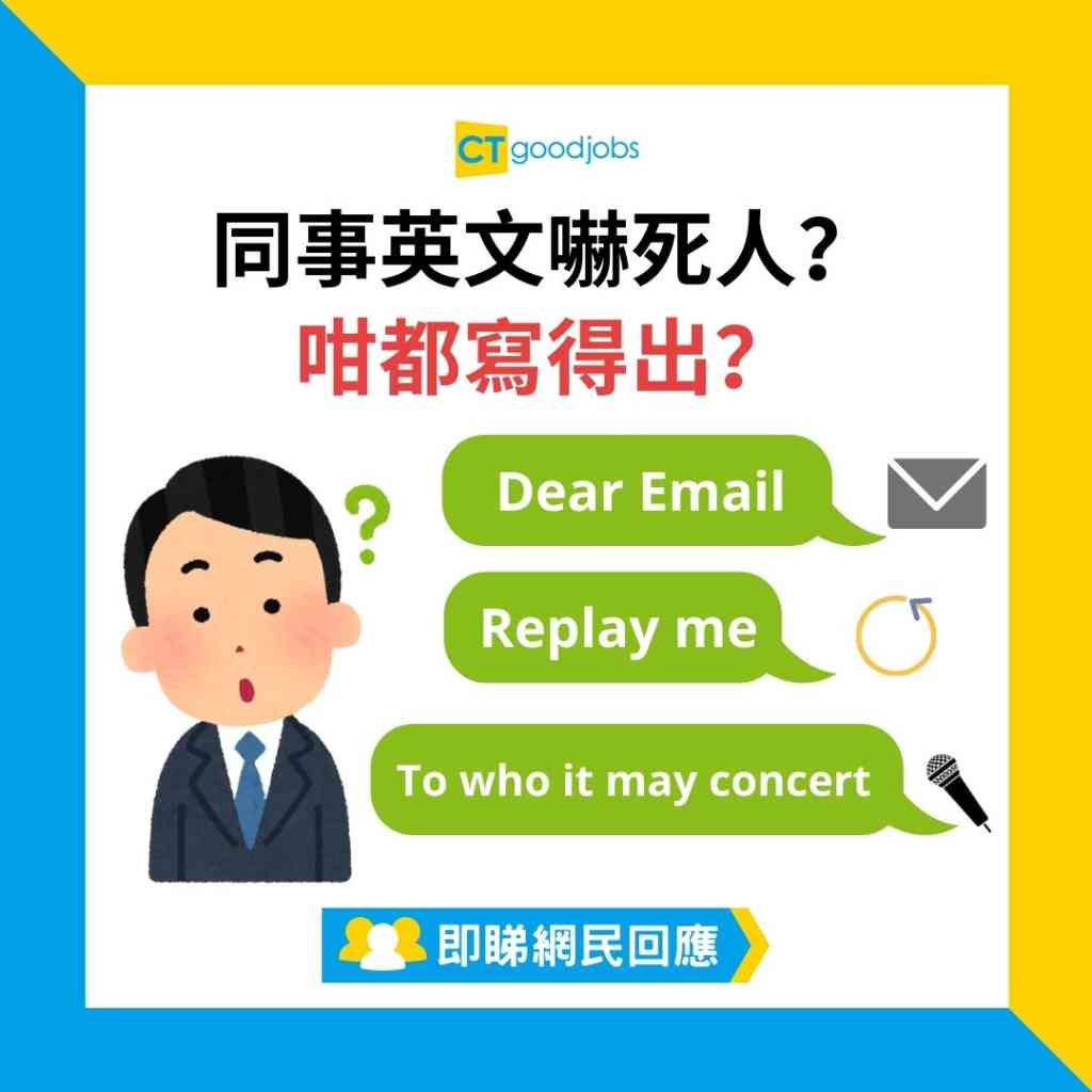 網民:「多年前我見過go ahead寫成go a hand、reply me 寫成replay me。重點封嘢用我名出,我無諗過佢咁都唔識畀佢直出,所以自己都要負責任嘅。」